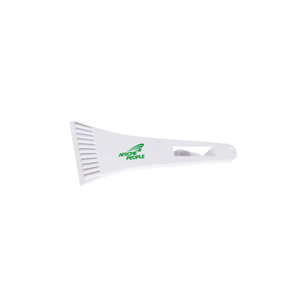 Equipped with a visor clip for easy access during freezing weather, the AFSCME Visor Clip Ice Scraper is a reliable winter preparedness tool. Constructed from high-impact polystyrene, it has a 9x3-inch blade and a 3 5/16 x 1 3/4-inch handle. Keep it nearby for those unforeseeable wintry days.